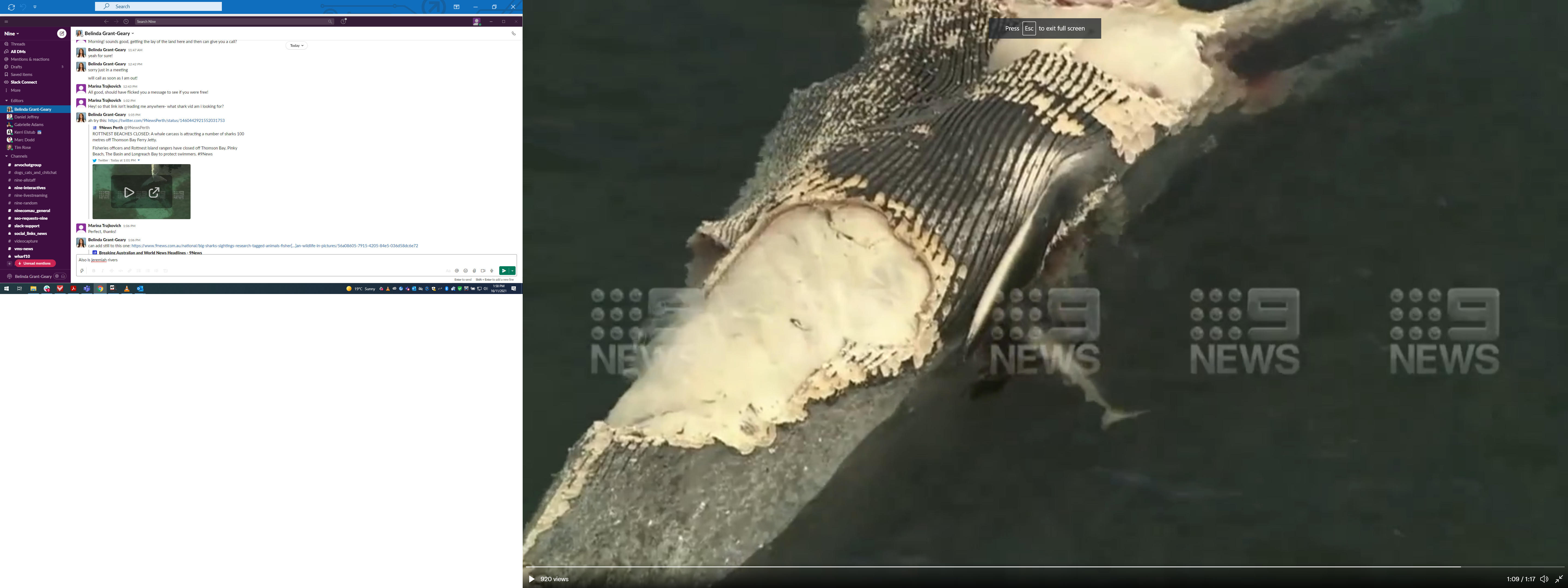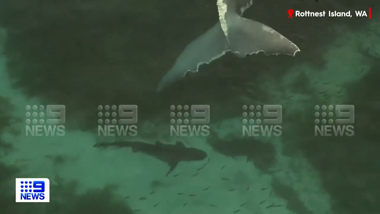 Some sharks had been sighted as close as 100m from the shore, forcing Rottnest Island Authority to close beaches within a one kilometre radius of the whale.