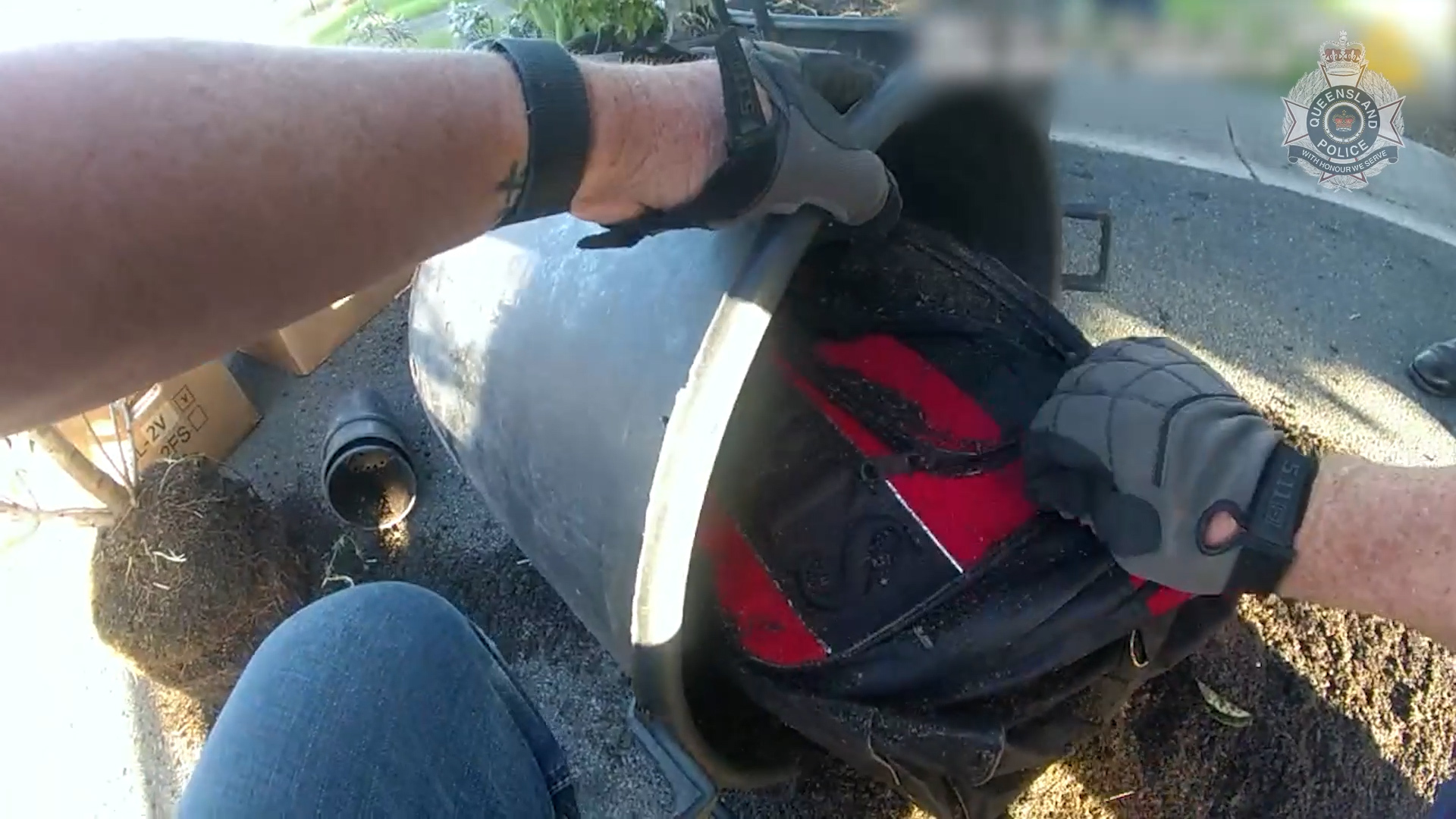 Upon examining the pot plants, a bag containing the methylamphetamine was found in the soil.
