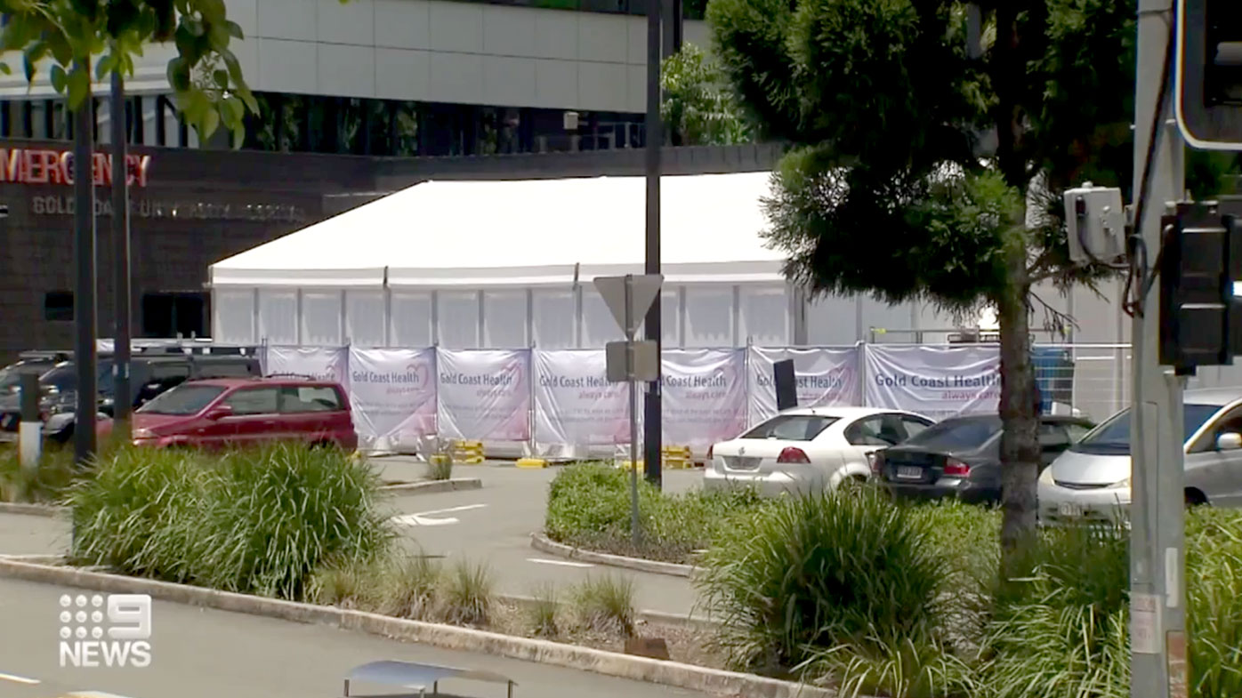 The Gold Coast University Hospital has set up a tent in the car park for patients waiting for treatment and increasing case numbers in Cairns, Brisbane and Ipswich are also having an effect.