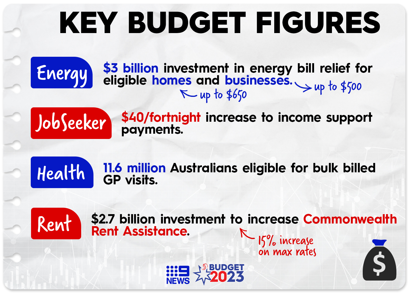 Renters who are currently on Commonwealth Rent Assistance will see the maximum rates increased by 15 per cent, at a cost of $2.7 billion to budget.