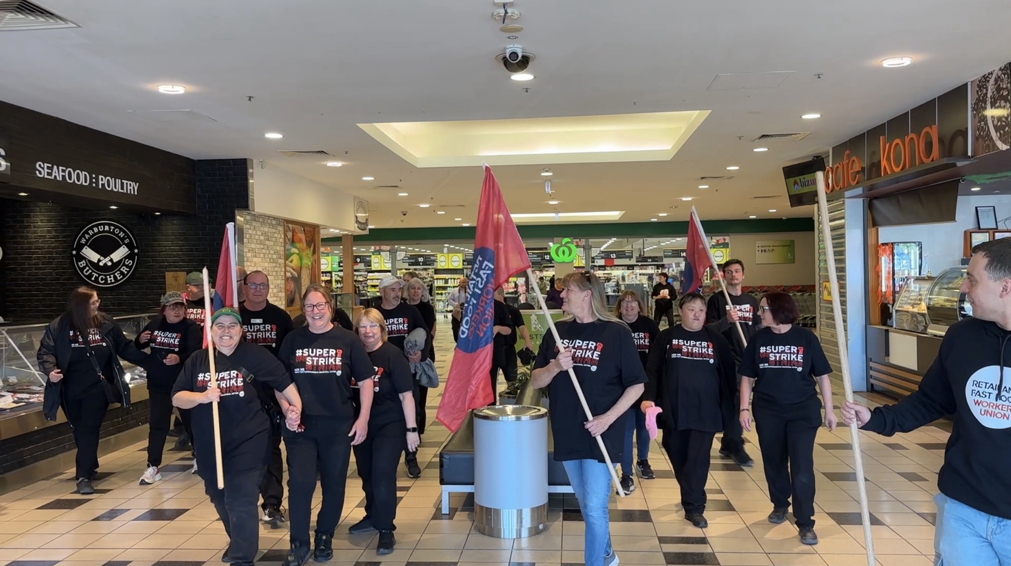 Members of the Retail and Fast Food Workers Union (RAFFWU) will stop work from 10am on Saturday for two hours over work and pay conditions.