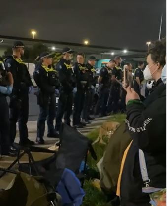 A heavy police presence has gathered around the protesters this afternoon, with reportedly around 50 officers descending on the protesters on horseback.