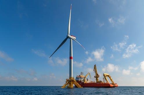 These wind turbines are enormous, reaching up to 240m tall – about the size of a skyscraper. Since they are so tall, strong winds far above the sea surface tend to make the turbine want to tilt, so platform designs focus on minimising this tilt while still being cost-competitive with other forms of energy.