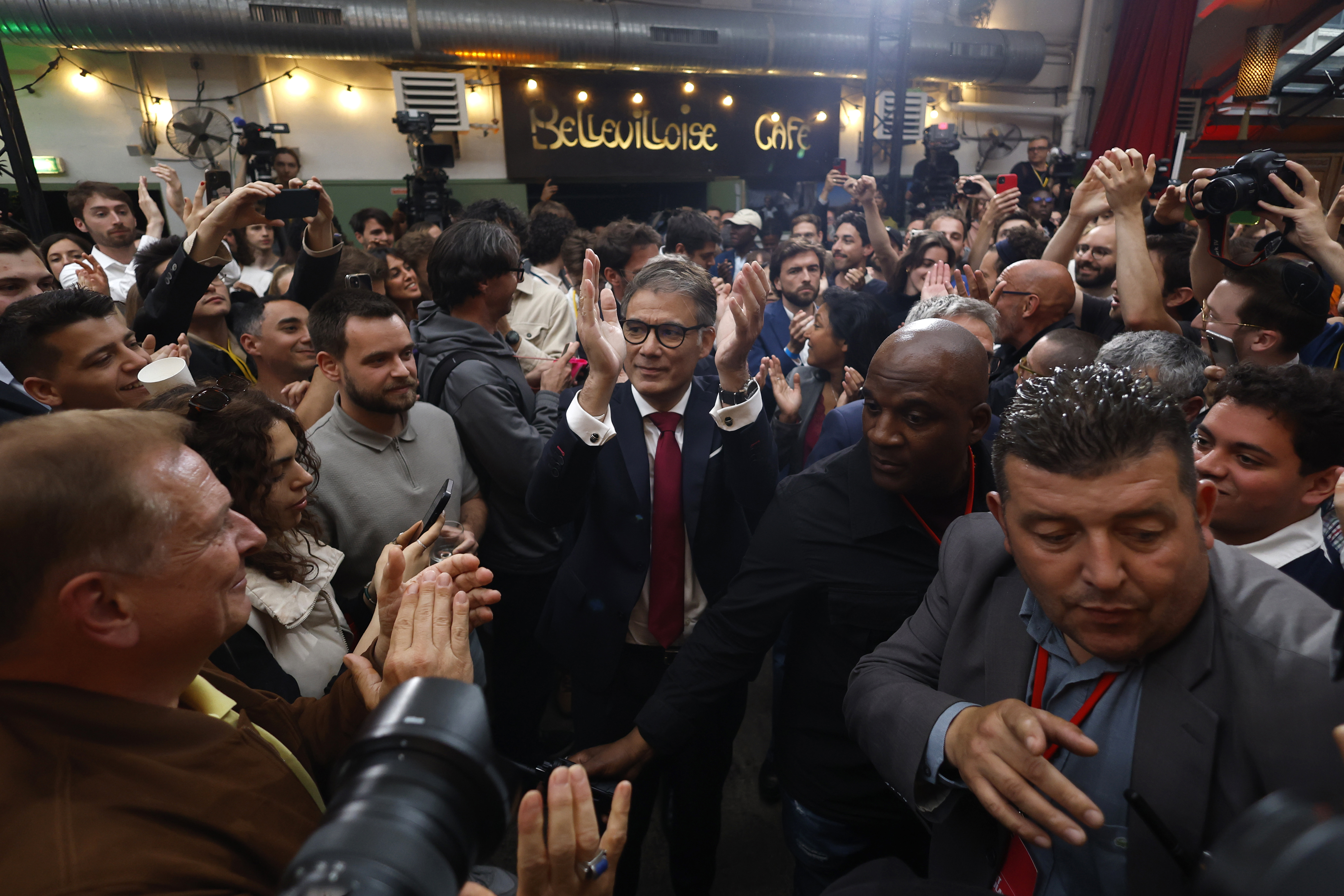 In Paris' Stalingrad square, supporters on the left cheered and applauded as projections showing the alliance ahead flashed up on a giant screen. Cries of joy also rang out in Republique plaza in eastern Paris, with people spontaneously hugging strangers and several minutes of nonstop applause after the projections landed.