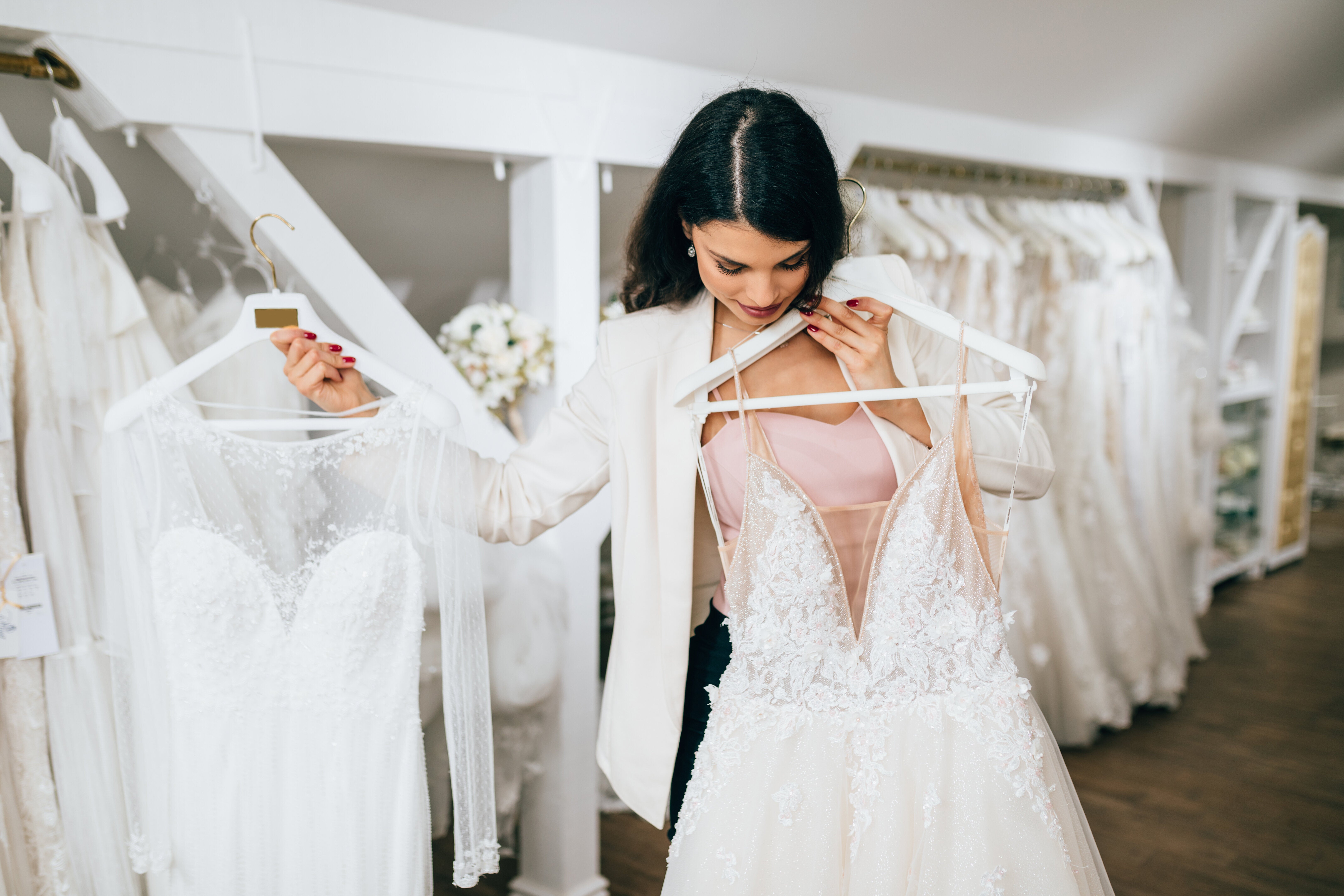 When you go to a wedding dress shop with a bride, are you also allowed to try on just one or two dresses asking for me.