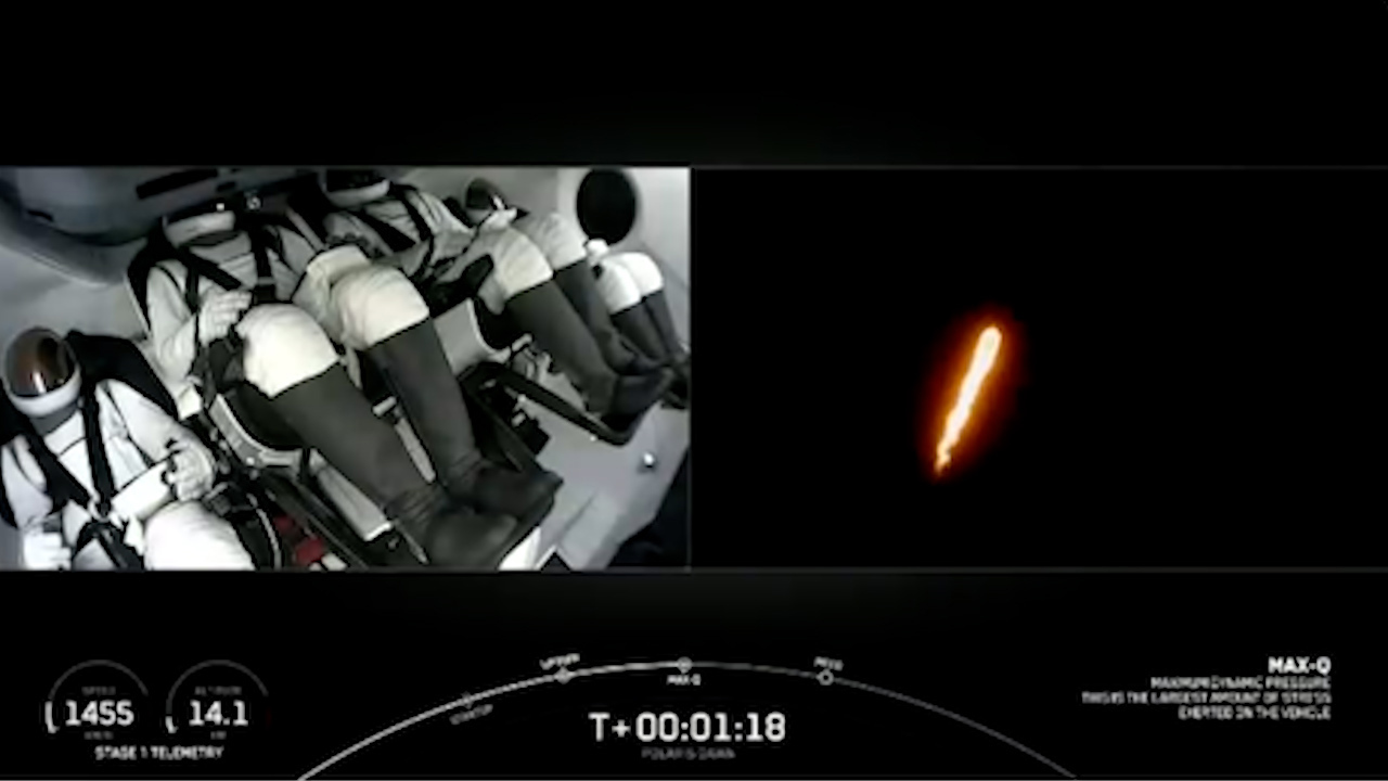 The crew rode atop the rocket, strapped inside an igloo-shaped SpaceX Crew Dragon capsule, which measures about four metres across at its base, as the rocket tears away from the grips of Earth's gravity.