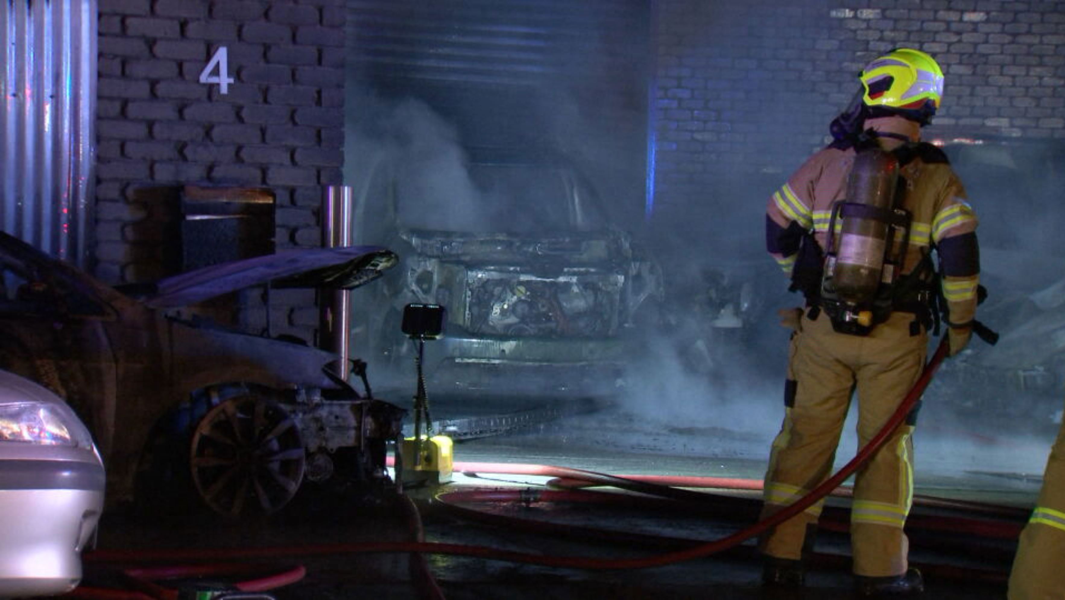 The arson attack destroyed 10 cars in the front yard but firefighters were able to save another 40 inside, including a Lamborghini and Maserati which were on display in the show room.