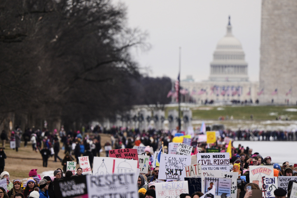 Melody Hamoud, a Washington resident, wore a pink hat that she had on at a 2017 march to protest Trump's first inauguration.