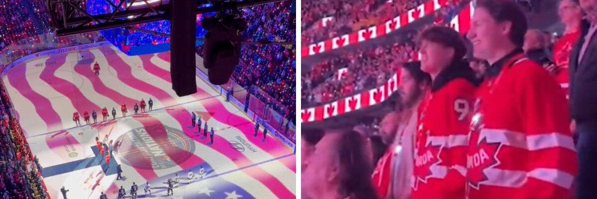 Saturday night’s highly anticipated 4 Nations Face-Off game between Canada and the United States in Montreal got off to a fiery start — long before the puck even dropped.