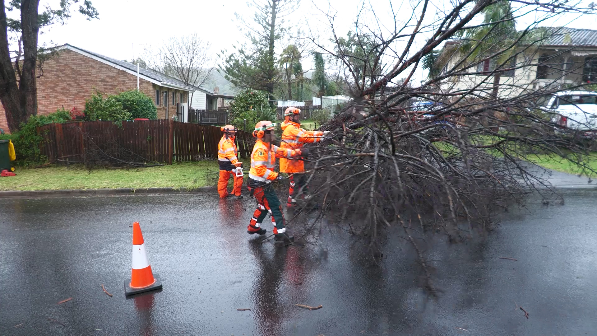 About 10pm, NSW SES said they’d been called out to 1300 incidents in 24 hours, including two flood rescues, and about 9000 homes and businesses were without power.