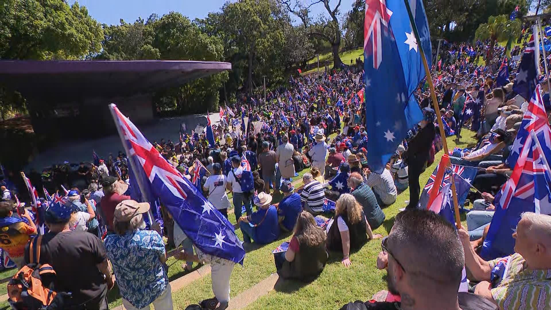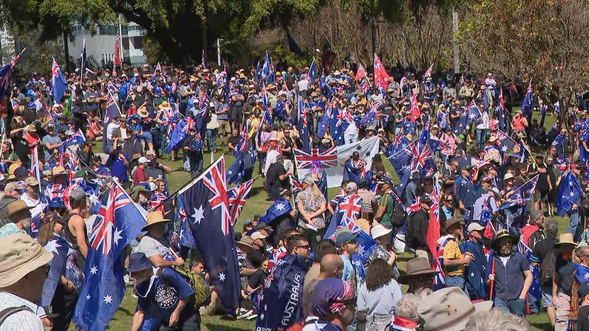 Sydney's March for Australia protest started in Belmore Park and ended at Victoria Park, while the counter-protest started at Prince Alfred Park, passed Belmore Park and continued to Hyde Park.