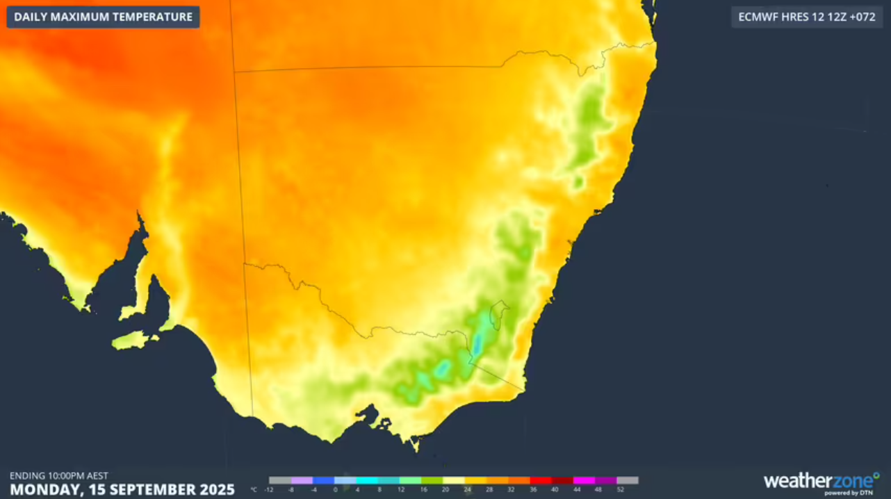 Melbourne today has a top of 24 degrees, with the possibility of a late shower.