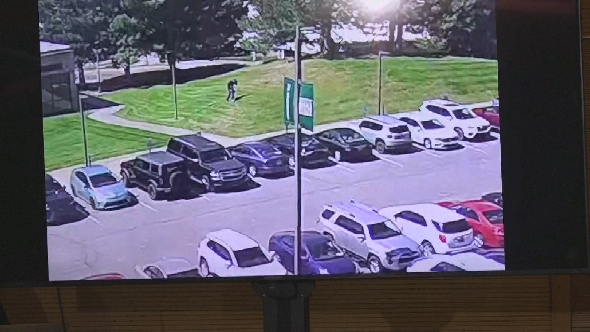 The suspected shooter then crosses the road and disappears into a wooded area, where officers later found a rifle.