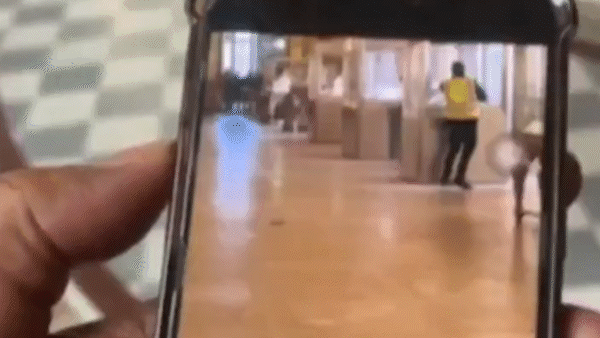 Shaky phone vision has emerged of a man, dressed in a high-visibility vest, allegedly smashing into a display case in the museum's gallery.